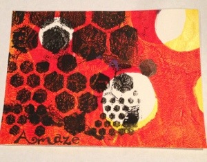 This is my favorite! Also a gelli print, coincidentally, and the flower is a stencil too.