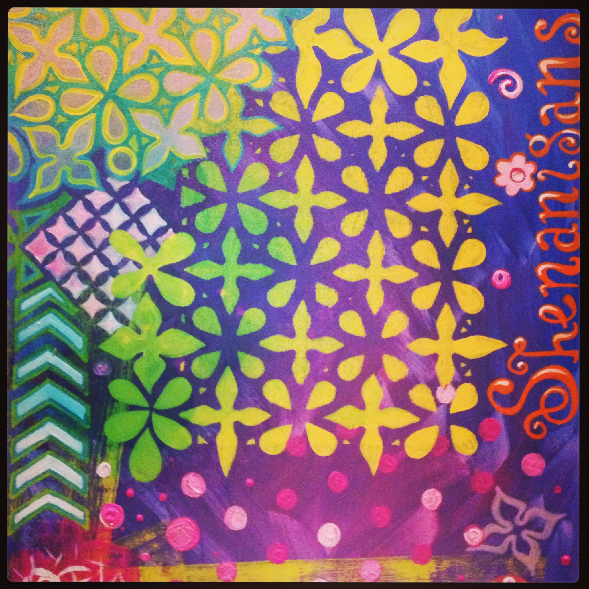I wish you could see the texture of this one better… I used gelli prints on packing tape, stencils, ink, paint & probably some other random things too!