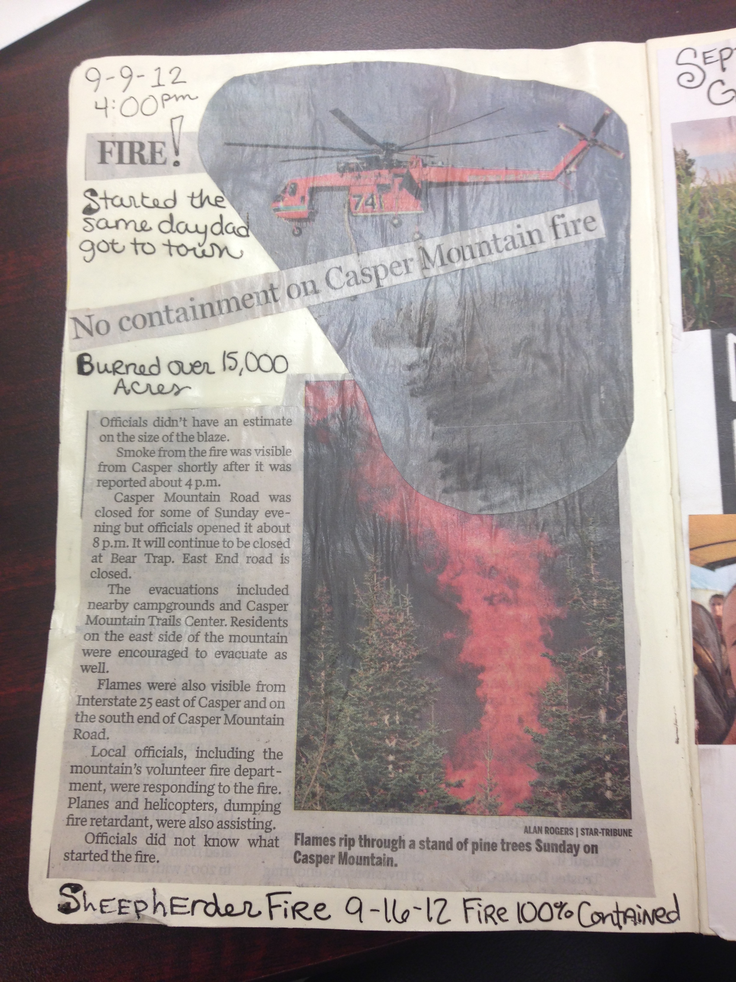 A week after my dad’s house burned down, he came to stay with us & then the mountain in Casper, lit on fire…