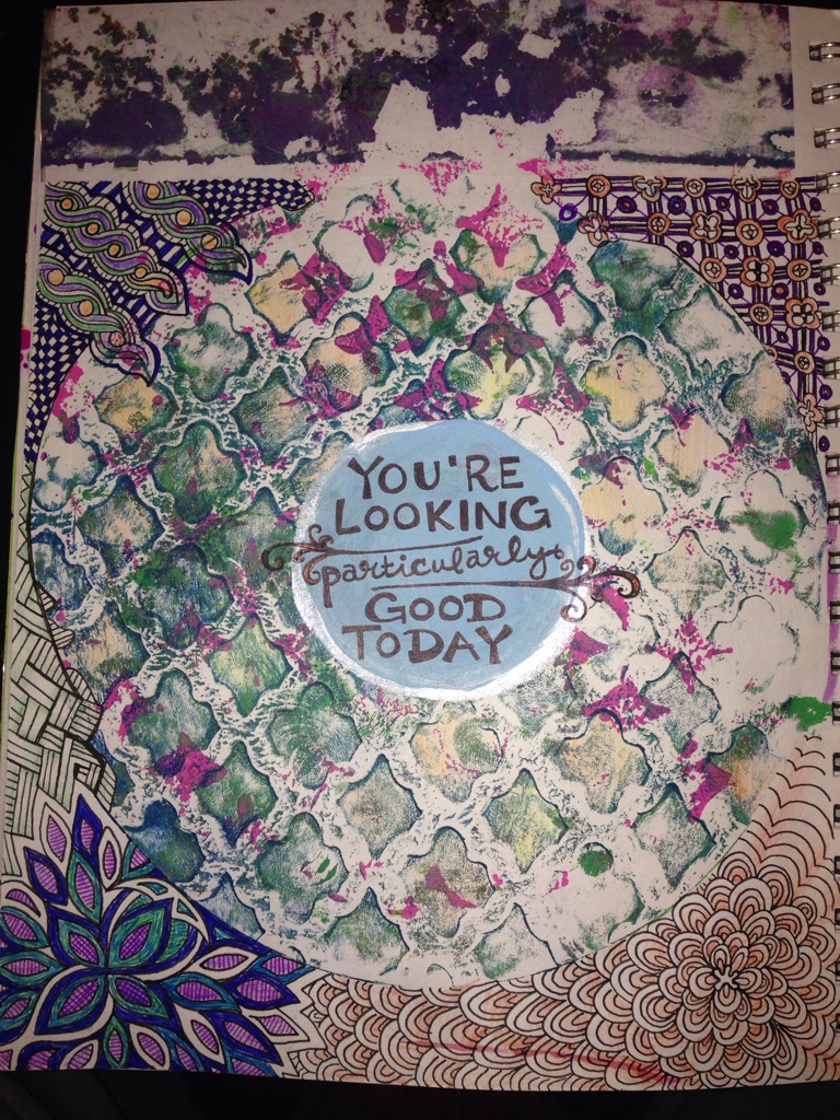 You’re Looking Good! 0 January 23, 2014January 23, 2014 Written by Brilliantly Bri Art A page from my art journal with a gelli printed background, zentangled border and a quote I painted on! Share this: Click to share on X (Opens in new window) X Click to share on Tumblr (Opens in new window) Tumblr Click to share on Facebook (Opens in new window) Facebook More Click to share on Pinterest (Opens in new window) Pinterest Click to print (Opens in new window) Print Like Loading...