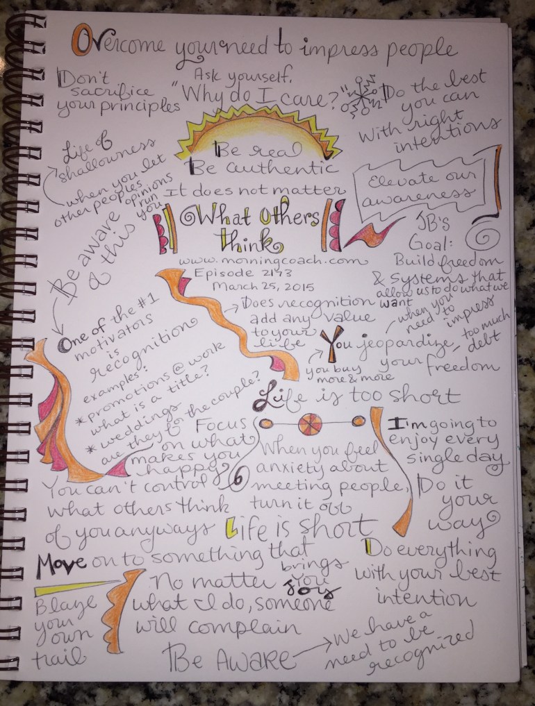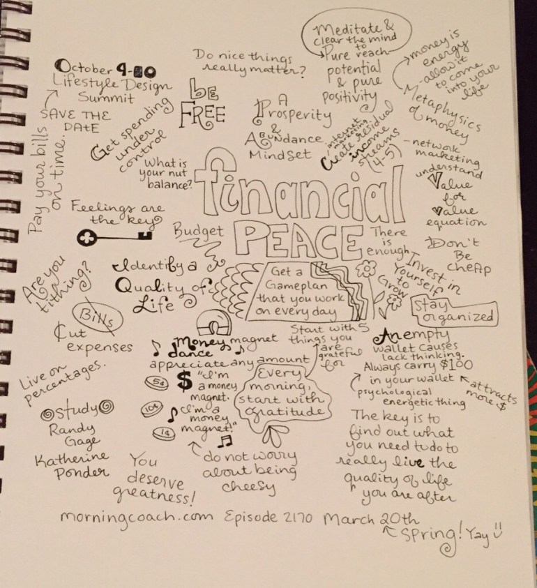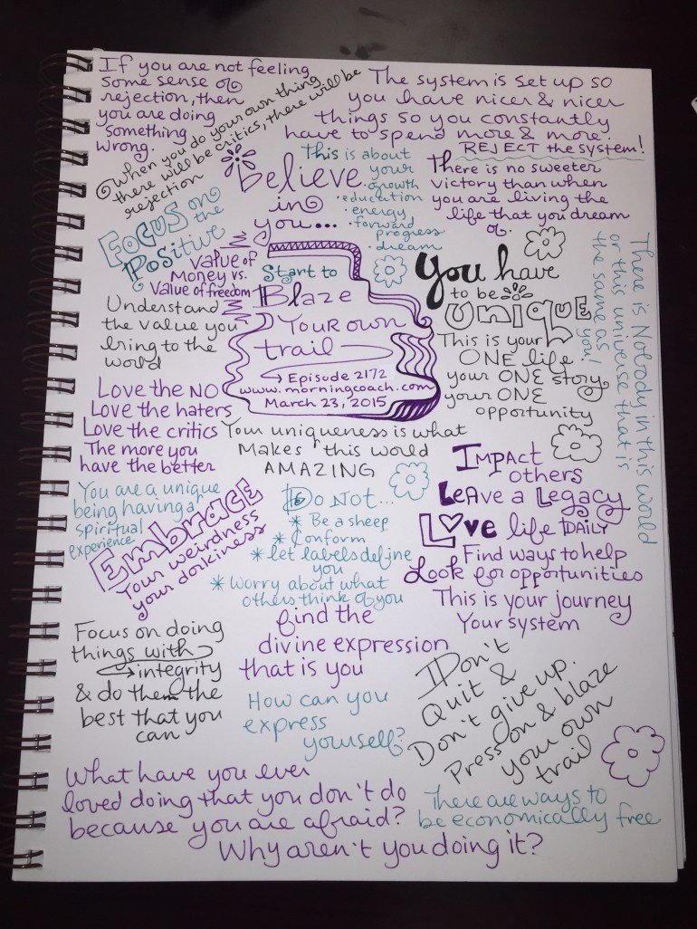 Ever since I returned from the RE/Max National Convention, I have been freaking out about doodling…. I have listened to the morning coach podcast with JB Glossinger for at least 3 years now and I’ve never taken in his content as much as I am now by taking notes during each episode. It’s such great information.
