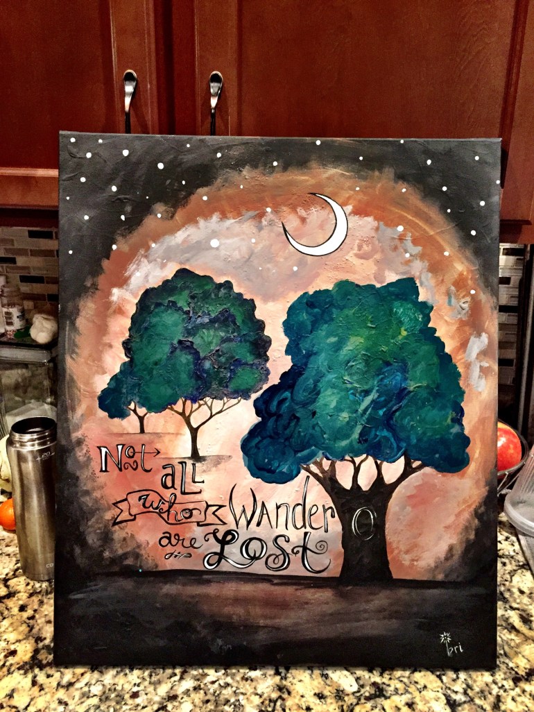 Not all who wander are lost 0 October 13, 2015 Written by Brilliantly Bri Art Share this: Click to share on X (Opens in new window) X Click to share on Tumblr (Opens in new window) Tumblr Click to share on Facebook (Opens in new window) Facebook More Click to share on Pinterest (Opens in new window) Pinterest Click to print (Opens in new window) Print Like Loading...