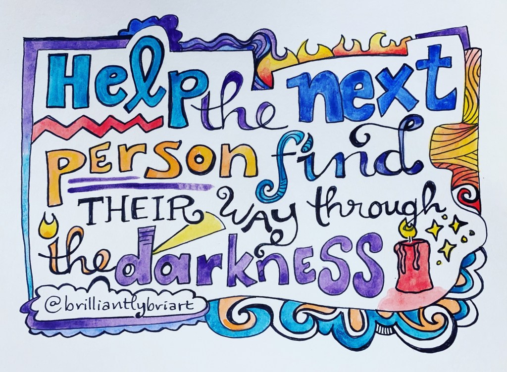 Help Others Find Their Way… 0 December 29, 2020 Written by Brilliantly Bri Art Help the next person find their way through the darkness…The good thing about going through hard times is that then you can be the light & help others see that there is a light at the end of the tunnel.#quotes #inspiration #helpothers #bethelight #sharpiepens Share this: Click to share on X (Opens in new window) X Click to share on Tumblr (Opens in new window) Tumblr Click to share on Facebook (Opens in new window) Facebook More Click to share on Pinterest (Opens in new window) Pinterest Click to print (Opens in new window) Print Like Loading...