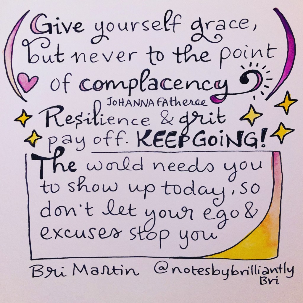 Here’s a reminder to myself and hopefully some of you that you absolutely need to give yourself grace but never let it hold you back or make it complacent… thanks Johanna!