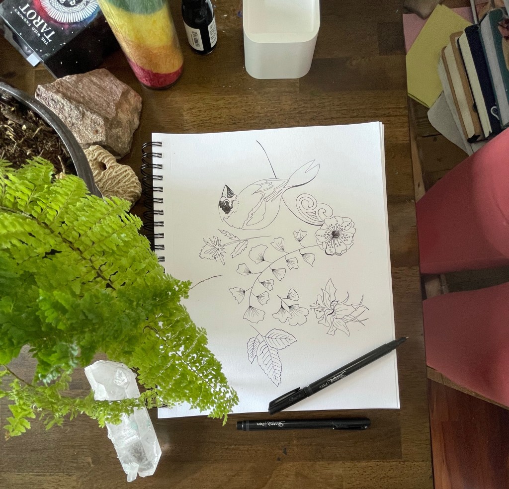 The wallpaper inspired me to attempt to replicate it (in Bri style) for the back of some book shelves Cassie’s re-facing and tiling for Funky Junk coming up May 15…