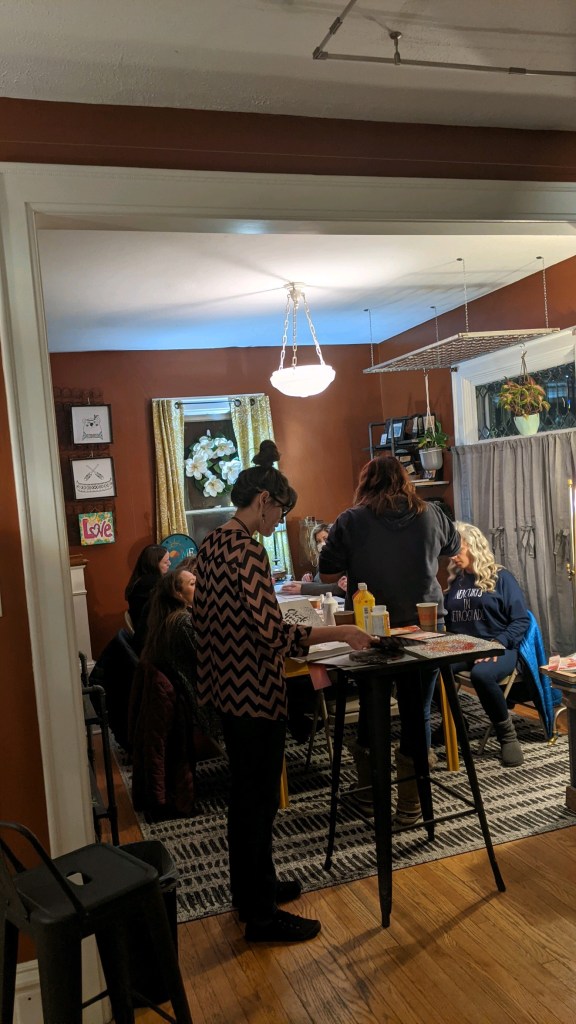 Last night I taught an art journaling class here in Casper, Wyoming at Funky Junk District & it was a blast! I’ll include one of my handouts here & I’d love to hear if anyone is interested in a virtual version of my class.