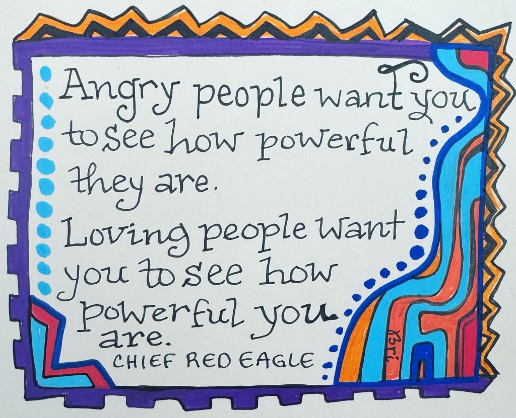 ‘Angry people want you to see how powerful they are. Loving people want you to see how powerful you are.’ – Chief Red Eagle